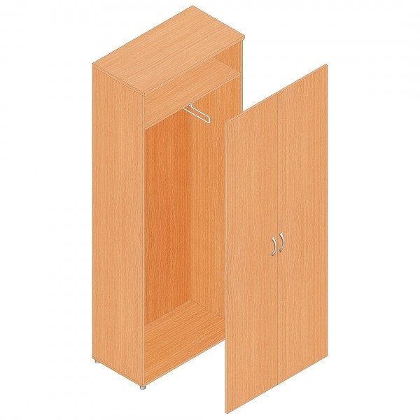 Топ из ДСП 22 мм., остальные элементы из ДСП 16 мм., кромка ПВХ 0,45 мм, регулируемые опоры, выдвижная штанга для одежды.